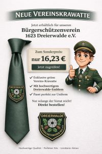 Der Bürgerschützenverein Dreierwalde 1623 e.V. lädt herzlich ein zur ersten Börsenparty im Festzelt Dreierwalde am Mittwoch, den 13. Mai 2026. Freut euch auf einen Abend… Börsenparty 2026 weiterlesen - Vereinskrawatte